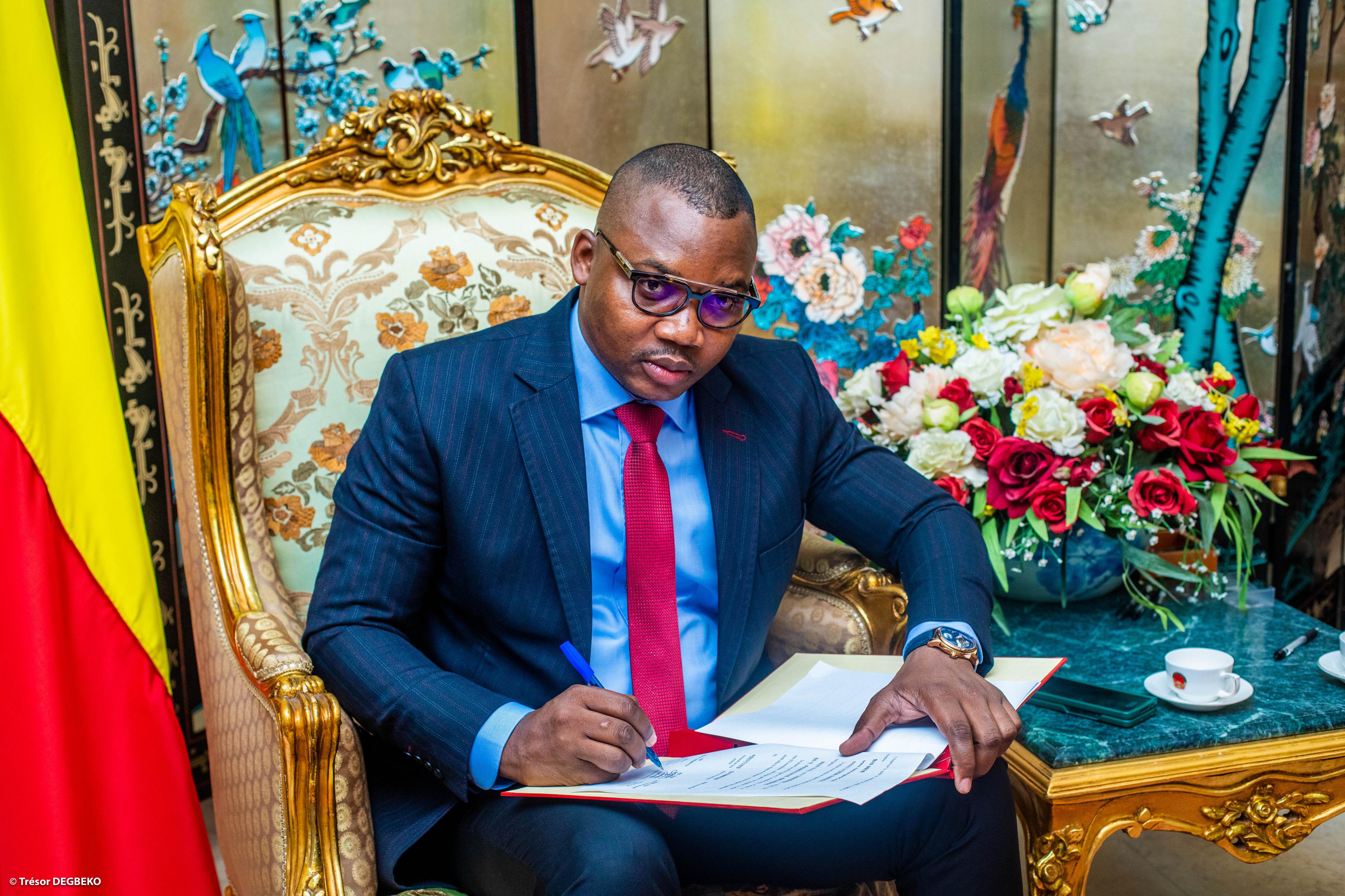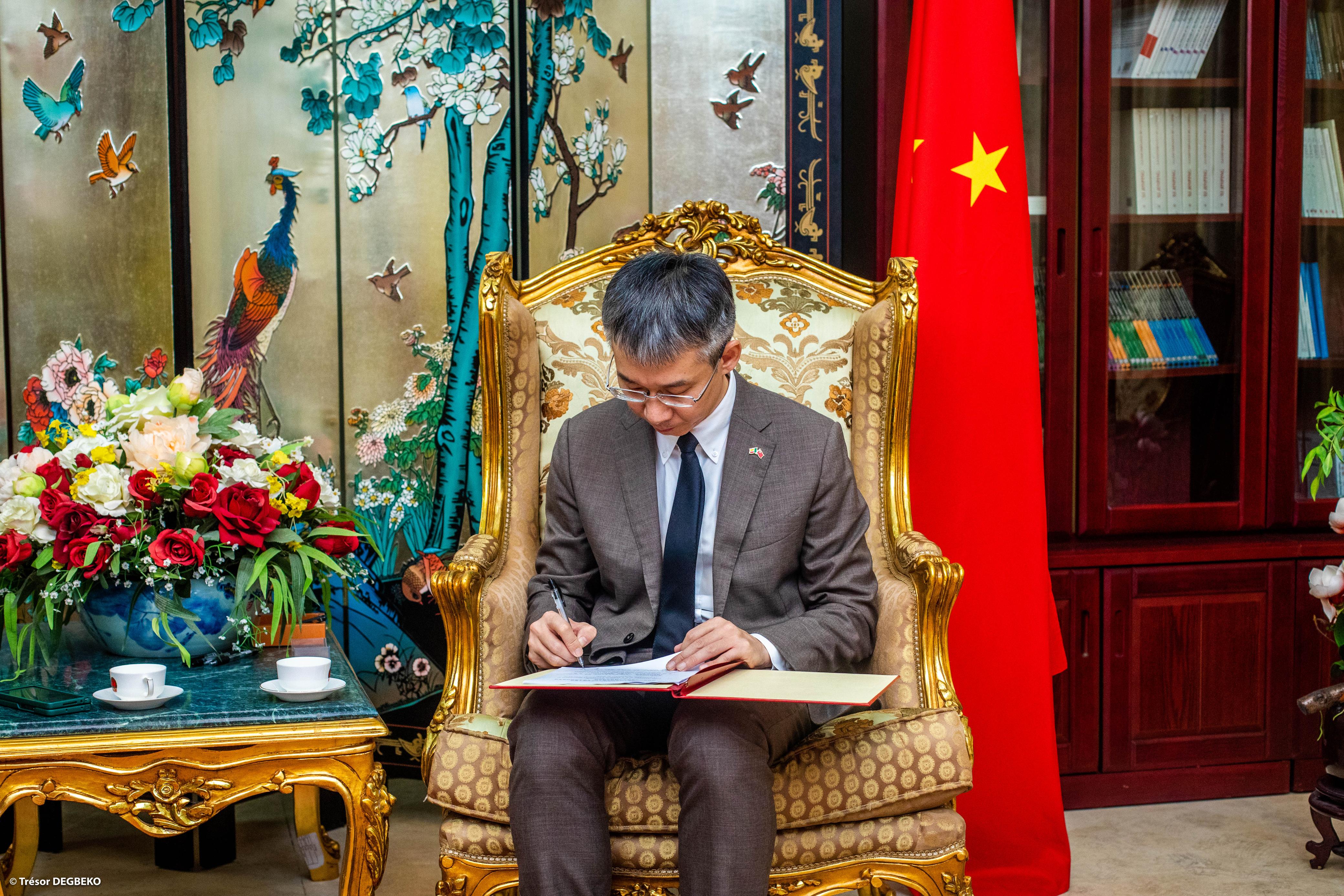 Le Maire de la commune de Klouékanmè, M. Coffi Dieudonné GBEDJEKAN, accompagné du Secrétaire Exécutif de la commune, M. Albert N'tcha N'DAH, s’est rendu à l’Ambassade de la République Populaire de Chine au Bénin pour une visite de travail ce mercredi 27 novembre 2024, . Cette rencontre a abouti à la signature d’un accord de partenariat stratégique entre la mairie de Klouékanmè et l’Ambassade de Chine.