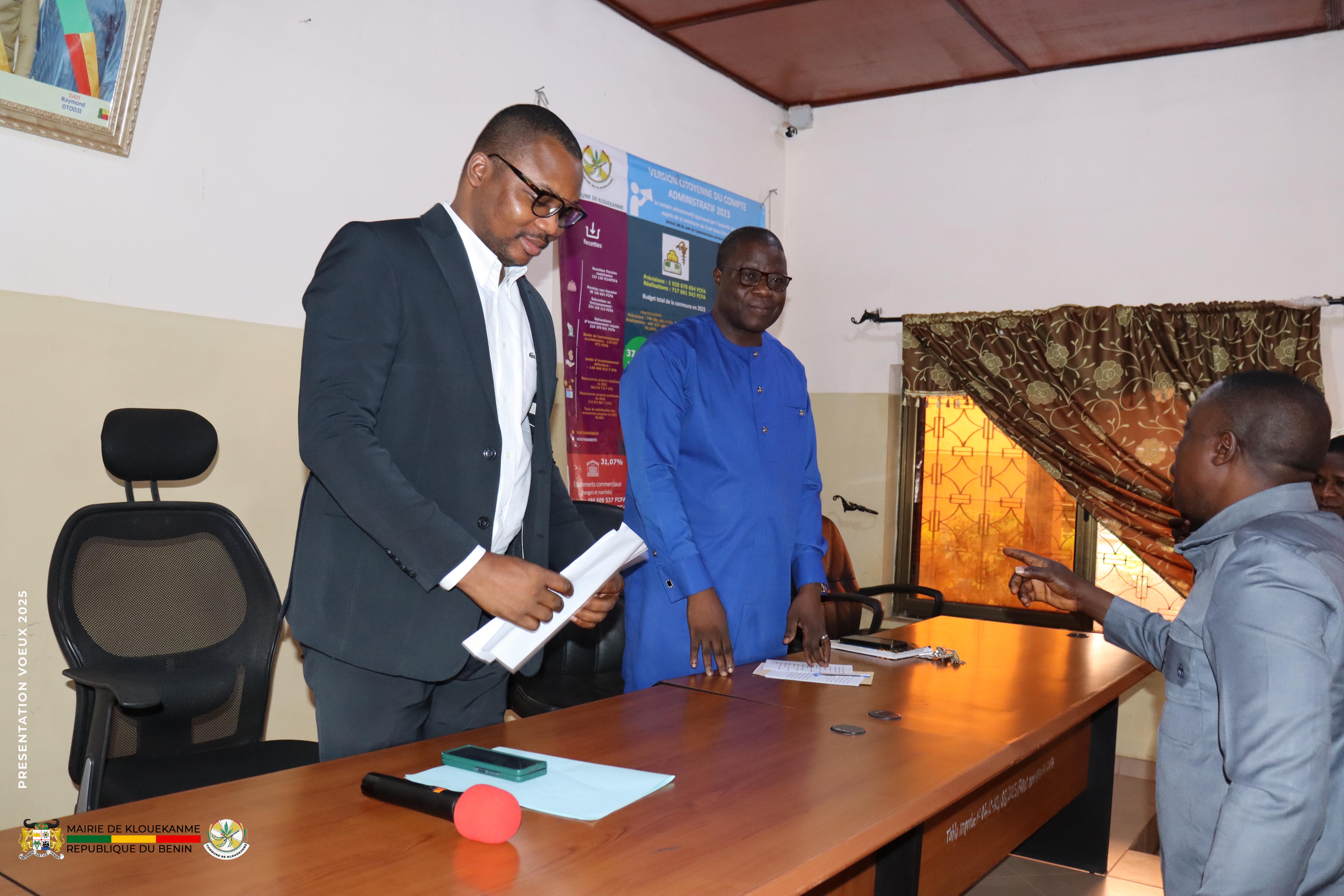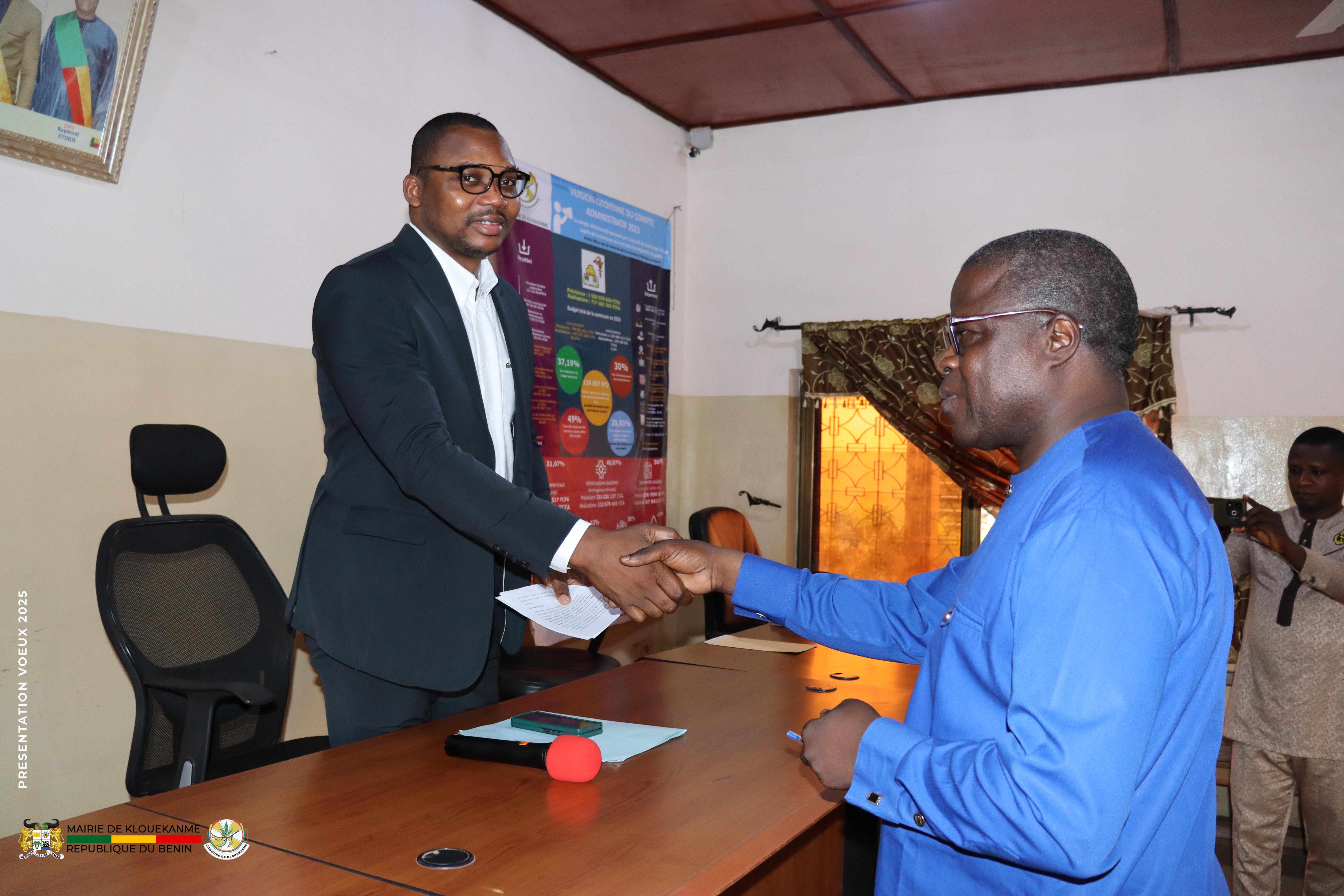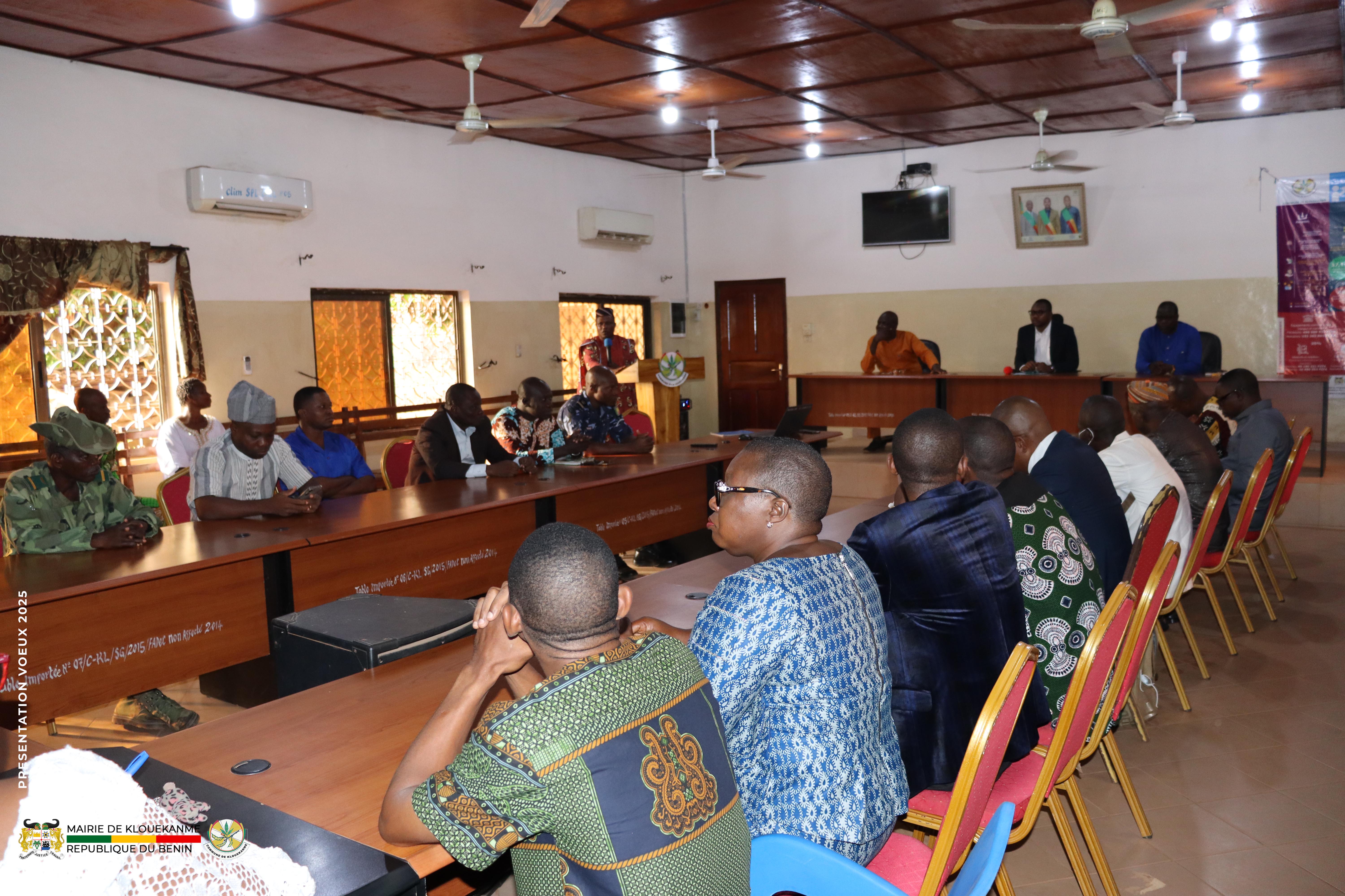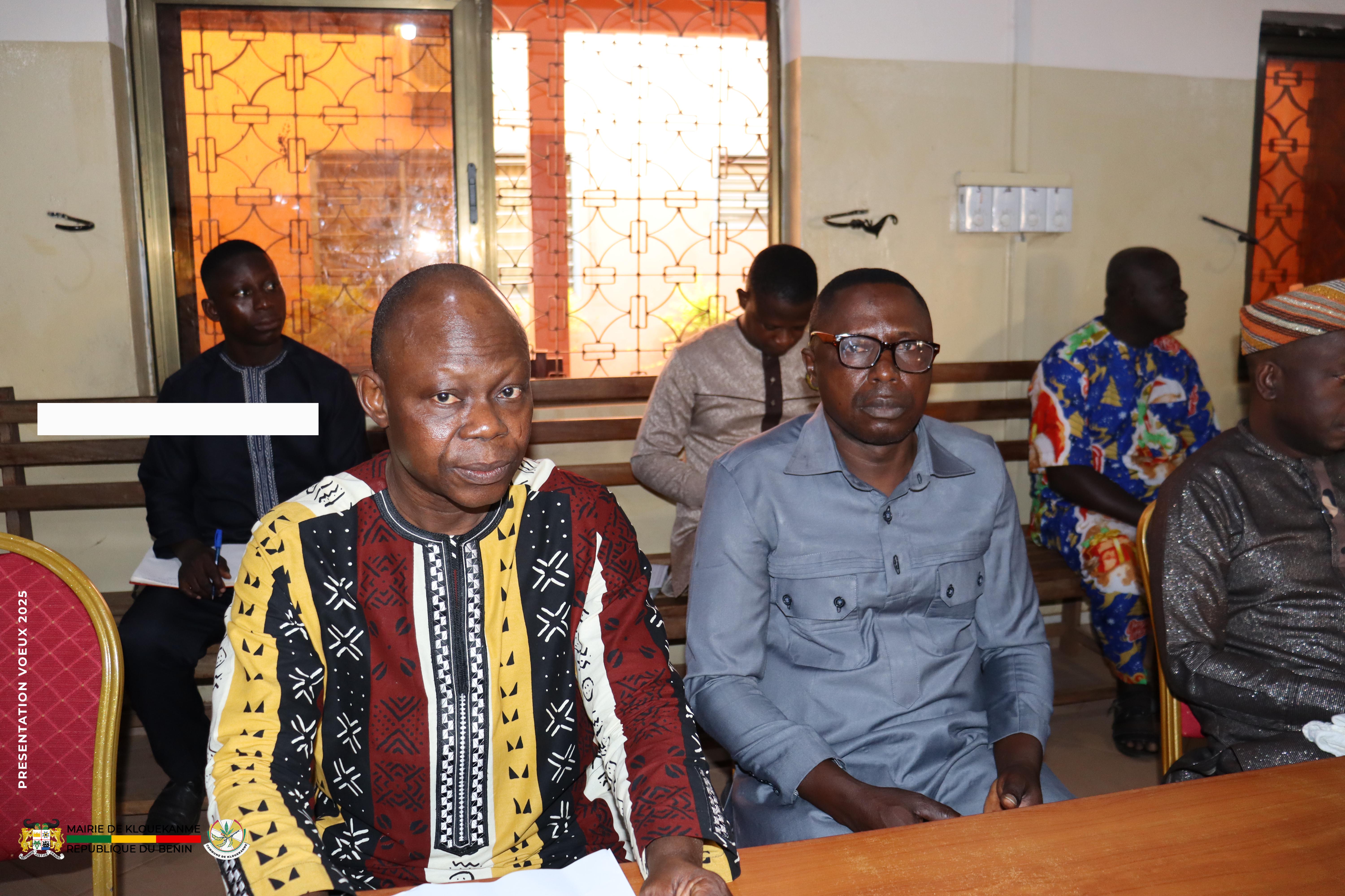 La salle de conférence de la mairie a servi de cadre, ce lundi 06 janvier 2025 à la traditionnelle cérémonie de présentation des vœux de nouvel an. Sous la présidence du Maire, Coffi Dieudonné GBEDJEKAN assisté des adjoints et du Secrétaire Exécutif, cet événement a réuni les responsables des services déconcentrés de l’État, les membres du Secrétariat Exécutif et le personnel administratif de la mairie.